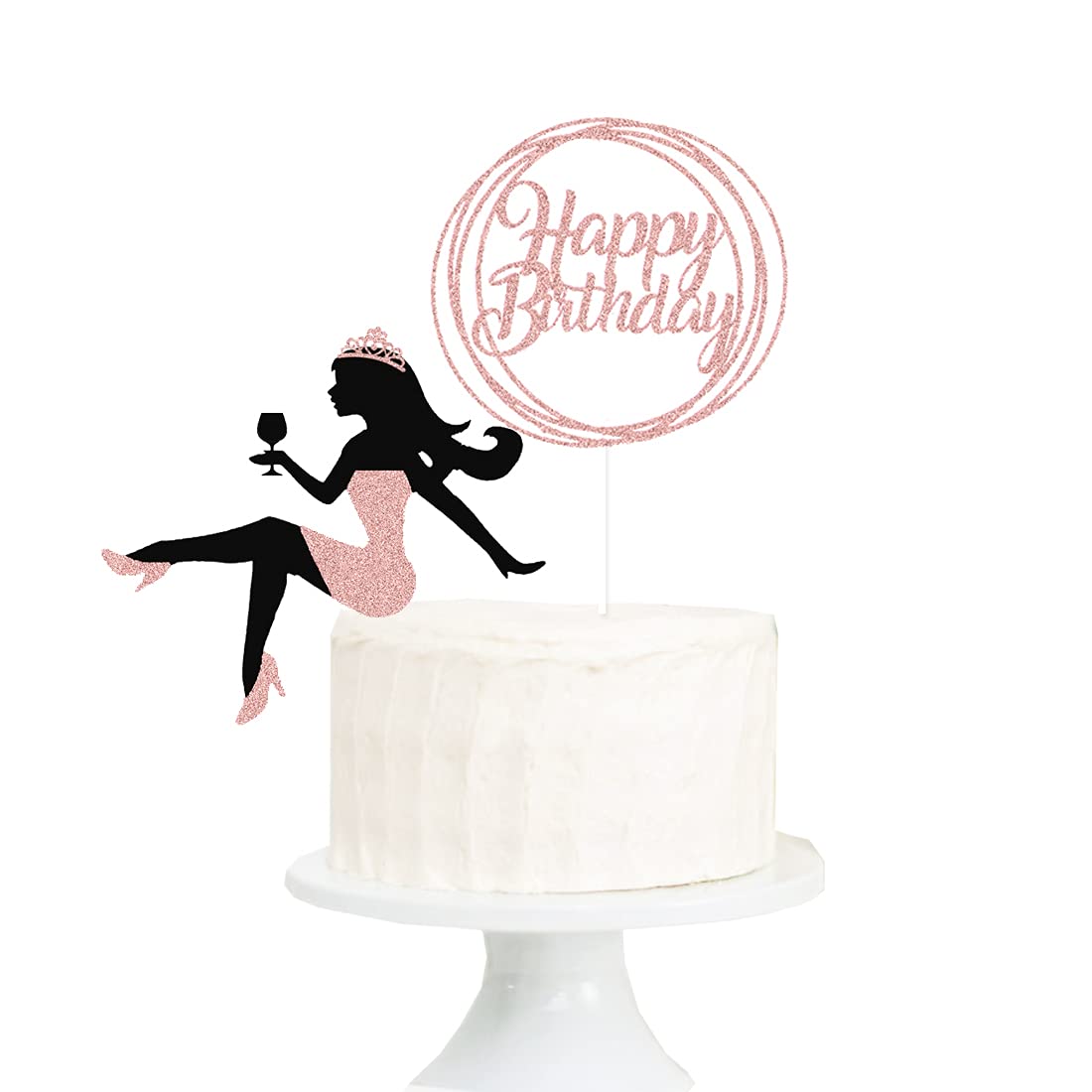 Amazon Com Rose Gold Glittery Girl Happy Birthday Cake Topper For Birthday Party Decorations Sitting Girl Women Womans Silhouette Birthday Cake Decorations Supplies Toys Games