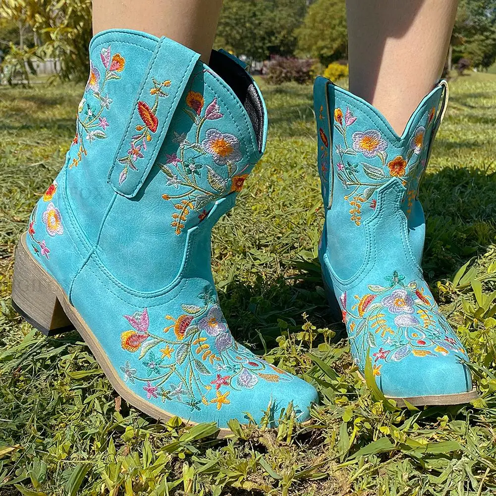 Karinluna Retro Female Western Boots Wood Sole Spike Heels Pointed Toe Slip On Floral Flower Ankle Boots Shoes Plus Size 48 Women S Boots Aliexpress